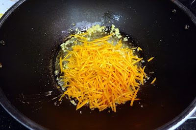 2) Add carrots, fry till softened, about 2 minutes on medium-high heat.