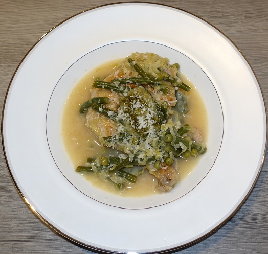 8) 15 minutes before serving, add peas.