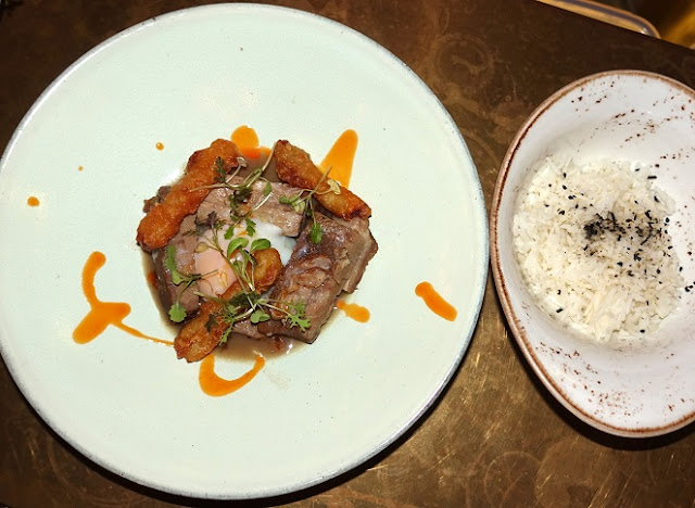 The Spiced Braised Iberico Pork ($26) centered upon a soft poached egg, and topped with a lime & jackfruit tempura, was mellow, nuanced, and well-rounded.